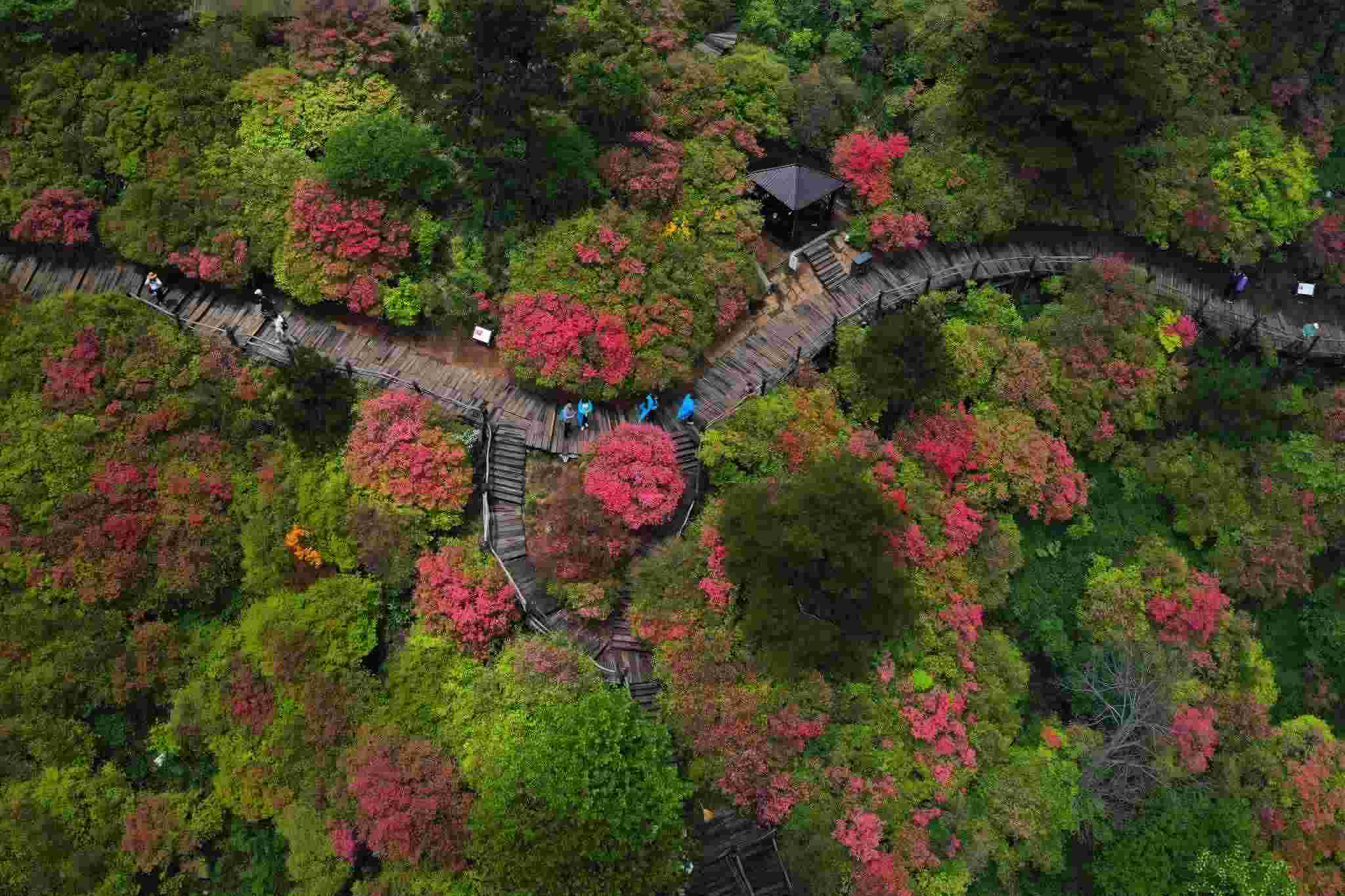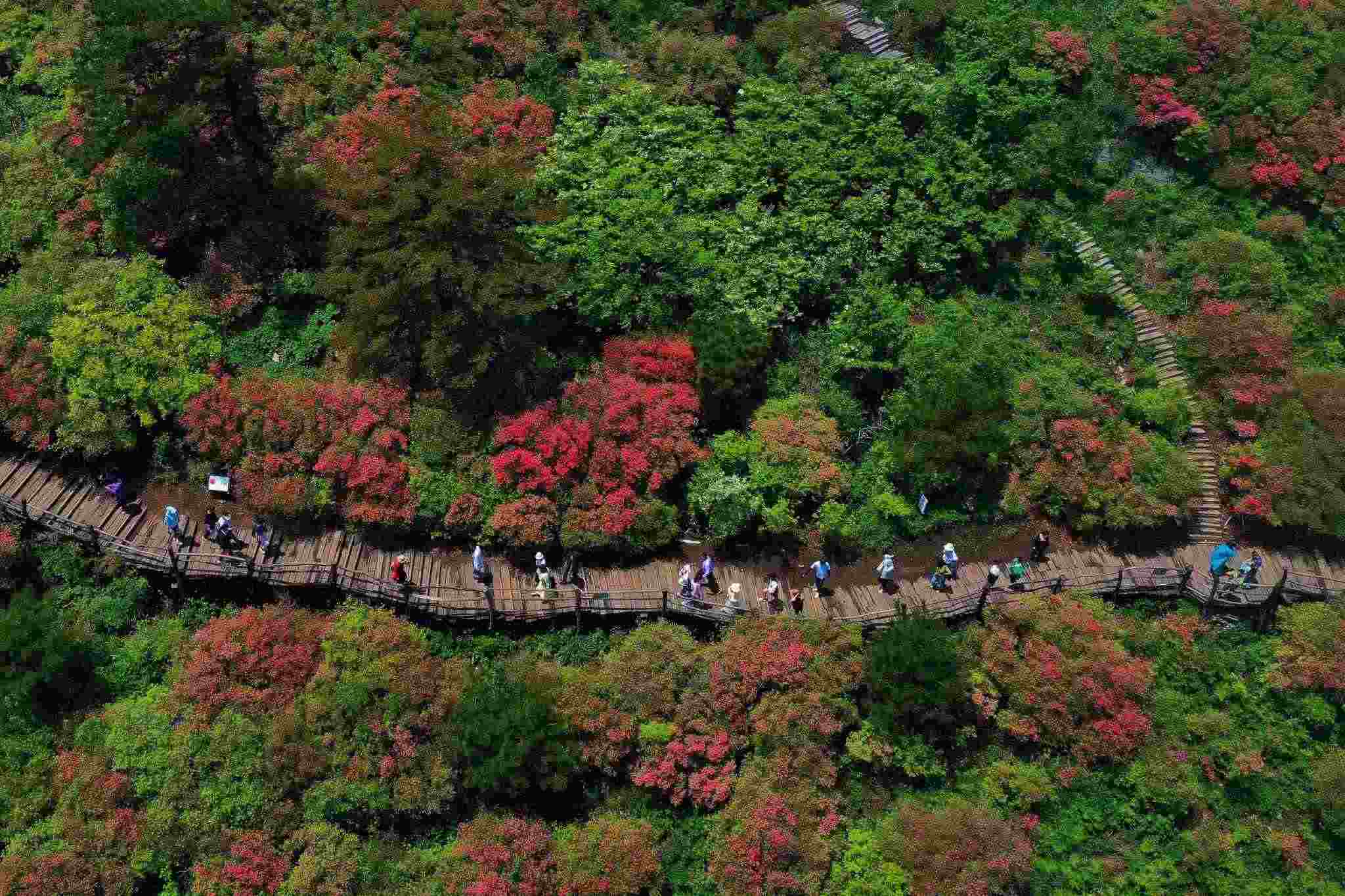 2023年5月5日,湖北黃岡,龜峰山杜鵑花綻放。視覺中國(guó)