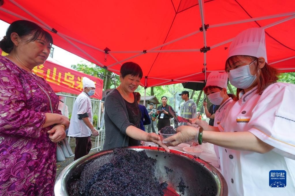 5月6日,游客在活動現(xiàn)場品嘗烏米飯。