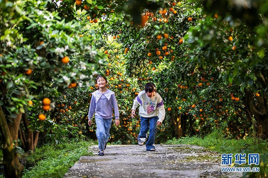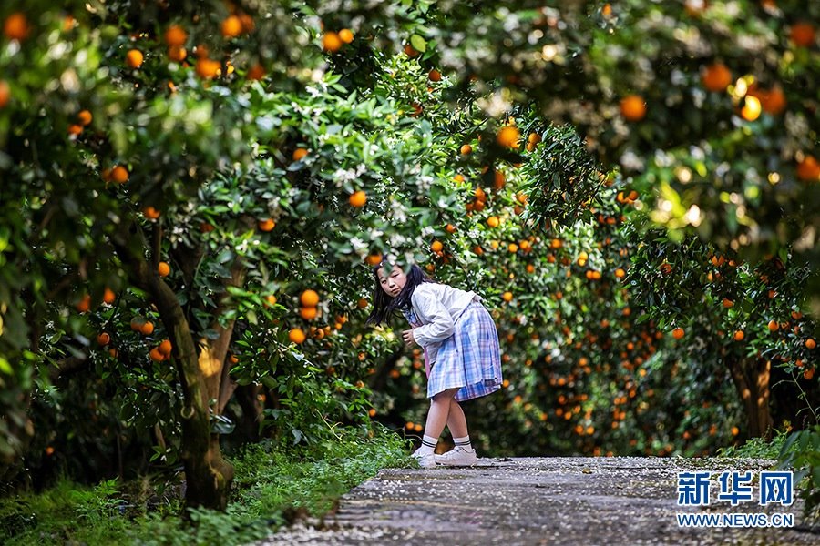 每到橘花燦爛時,綠浪掩映金色橙果,微風輕送撲鼻花香,吸引了不少游客前來觀賞,果子也實現(xiàn)就地銷售,柑橘成為農(nóng)民增收的“搖錢樹”。新華網(wǎng)發(fā)(余鴻 攝)