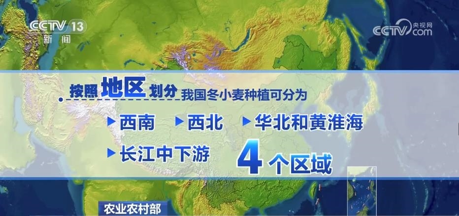 今年,全國(guó)冬小麥面積繼續(xù)穩(wěn)定在3.3億畝以上。按照地區(qū)劃分,我國(guó)冬小麥種植可分為西南、西北、華北和黃淮海、長(zhǎng)江中下游4個(gè)區(qū)域。
