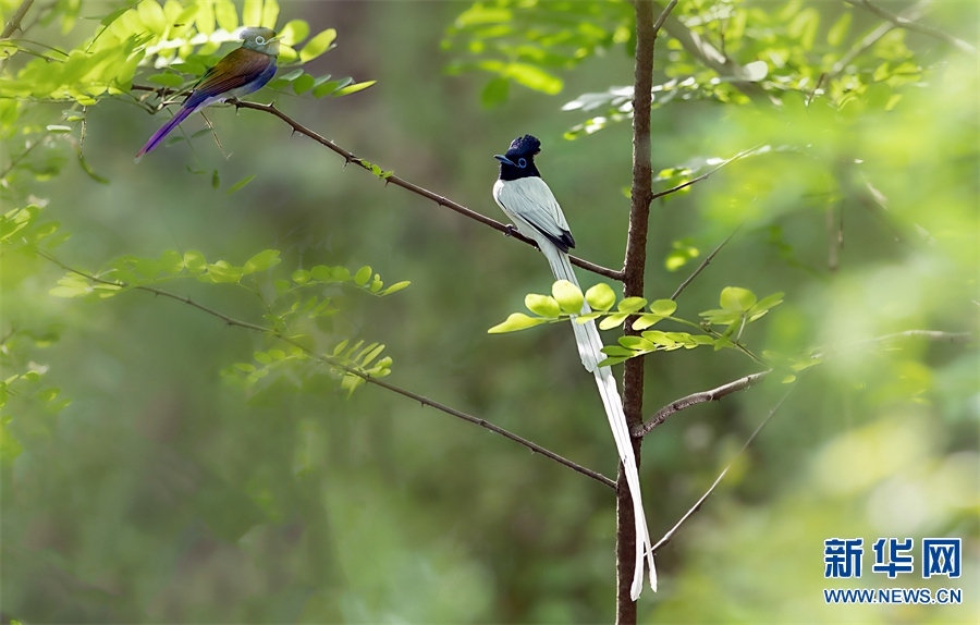 河南省信陽市新縣位于南北氣候過渡帶,地跨長江、淮河兩大流域,植被覆蓋率達95%,森林覆蓋率達76.7%。得天獨厚的自然生態(tài)環(huán)境,吸引了藍喉蜂虎、藍翡翠、戴勝等眾多鳥類在這里“安營扎寨”,繪出一幅生動和諧的自然畫卷。新華網(wǎng)發(fā)(闞敦傳 攝)