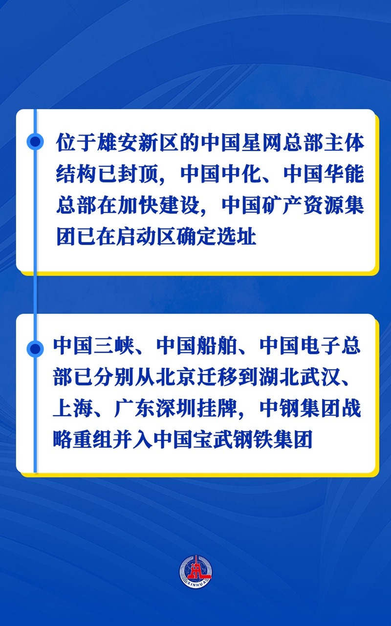 一批重大疏解項目正在陸續(xù)落地。截至目前,已推動8家央企總部遷出北京并在雄安新區(qū)等京外地區(qū)落戶建設(shè),首批4所高校、2家醫(yī)院等標志性疏解項目在雄安新區(qū)確定選址。