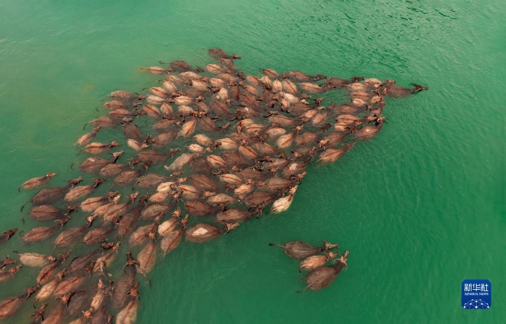 四川蓬安現(xiàn)“百牛渡江”景觀