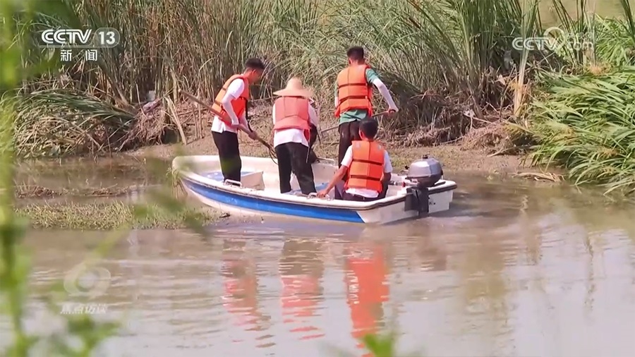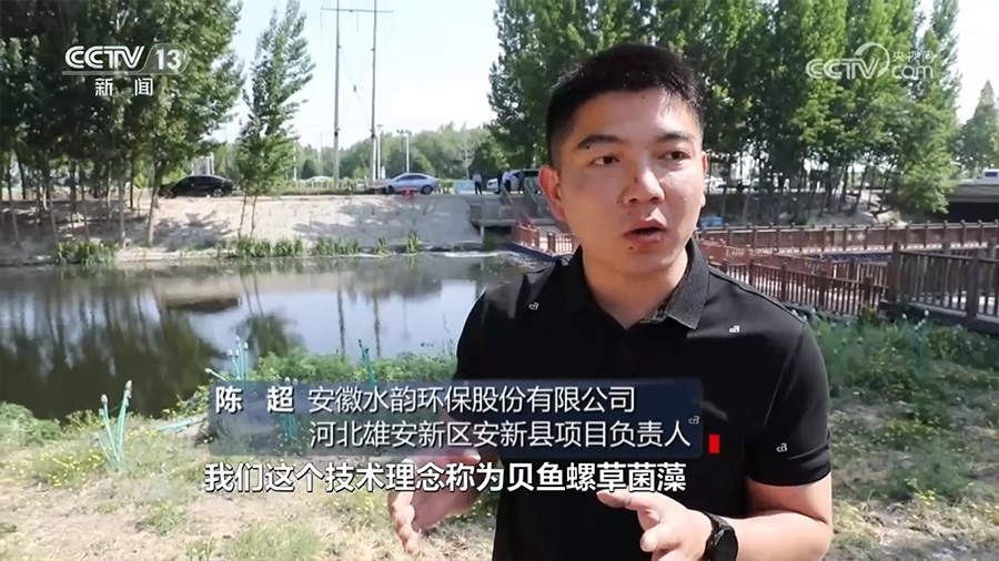 安徽水韻環(huán)保股份有限公司河北雄安新區(qū)安新縣項(xiàng)目負(fù)責(zé)人陳超:“水下是木樁搭的貝床。貝分為濾食性和刮食性,對(duì)水體里面浮游生物,尤其像菌藻類(lèi)水里面的COD(化學(xué)需氧量)、氨氮、總磷,具有一定的消解作用。我們這個(gè)技術(shù)理念稱(chēng)為貝魚(yú)螺草菌藻,也就是我們常說(shuō)的大魚(yú)吃小魚(yú)、小魚(yú)吃蝦米,形成閉環(huán)生物鏈,讓這個(gè)水體自?xún)裟芰μ嵘?,能穩(wěn)定在三類(lèi)到四類(lèi)水。”