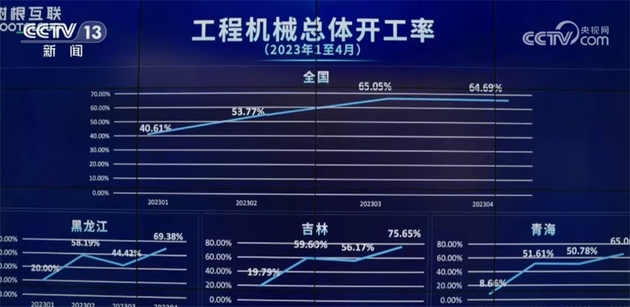 這個大屏幕反映的是全國挖掘機的開工情況,相關負責人告訴記者,“挖掘機指數”顯示出今年我國工程機械行業(yè)開始出現(xiàn)回暖跡象。4月份,全國工程機械總體開工率為64.69%,環(huán)比3月基本持平。12個?。▍^(qū)、市)創(chuàng)下今年以來最好成績。