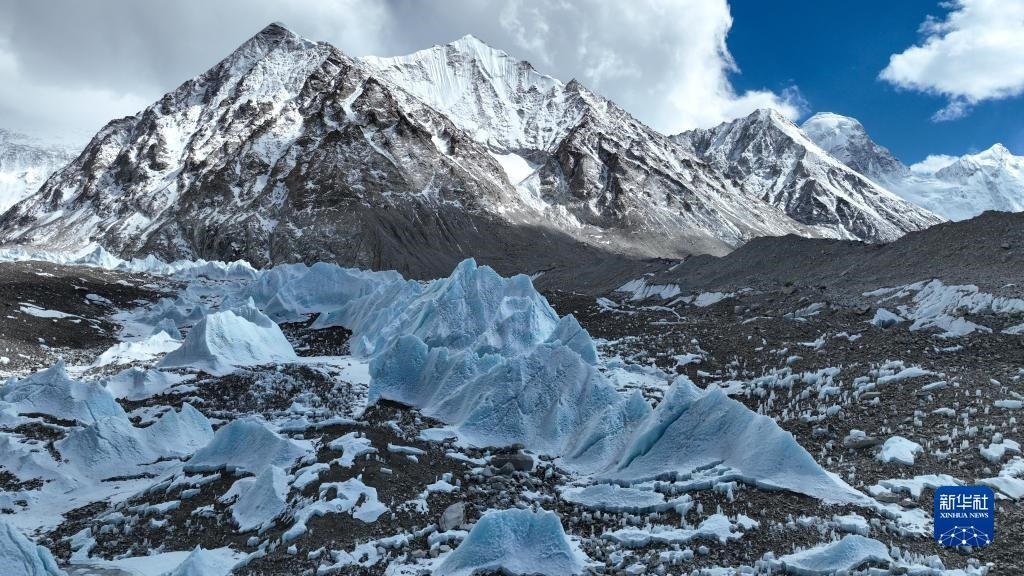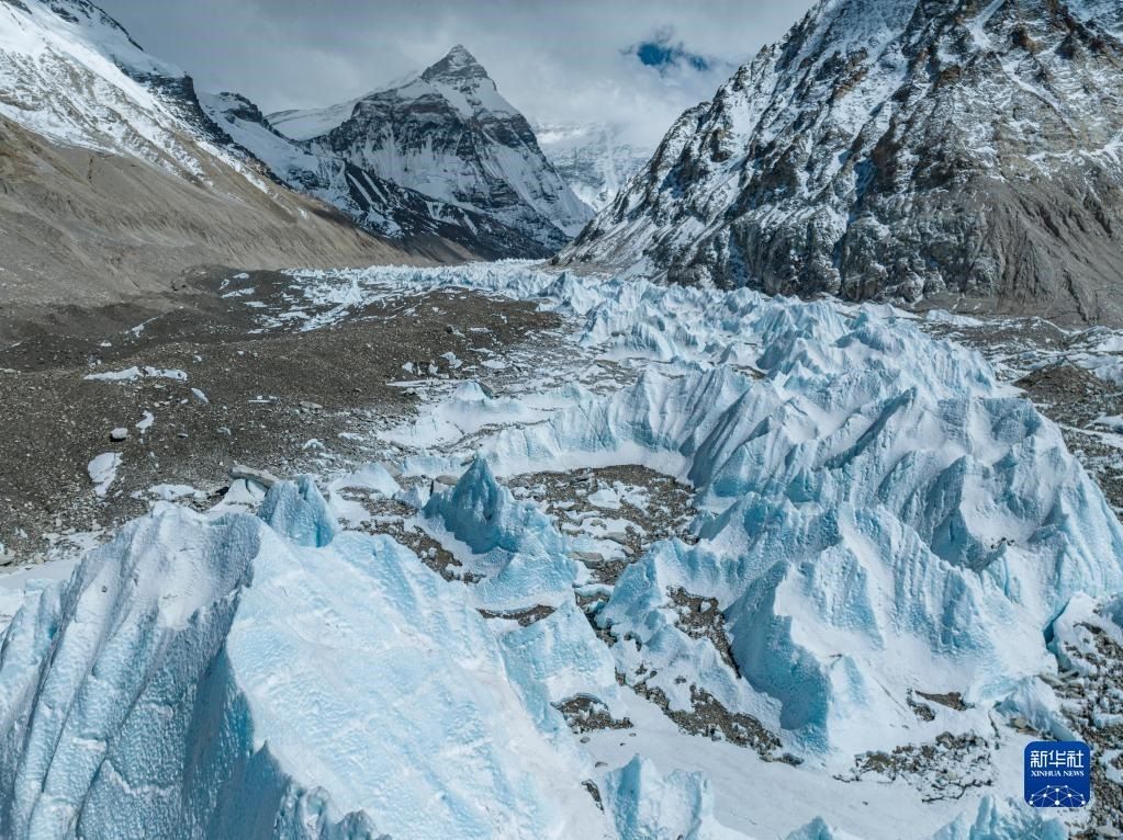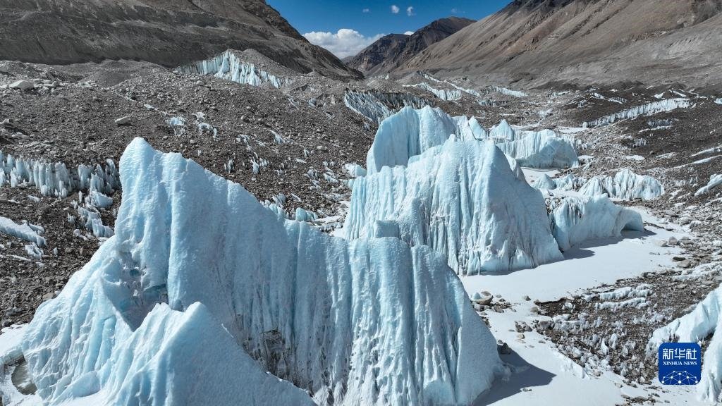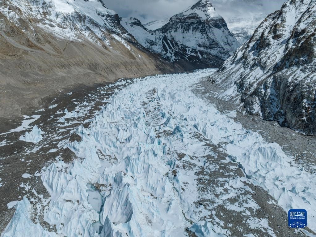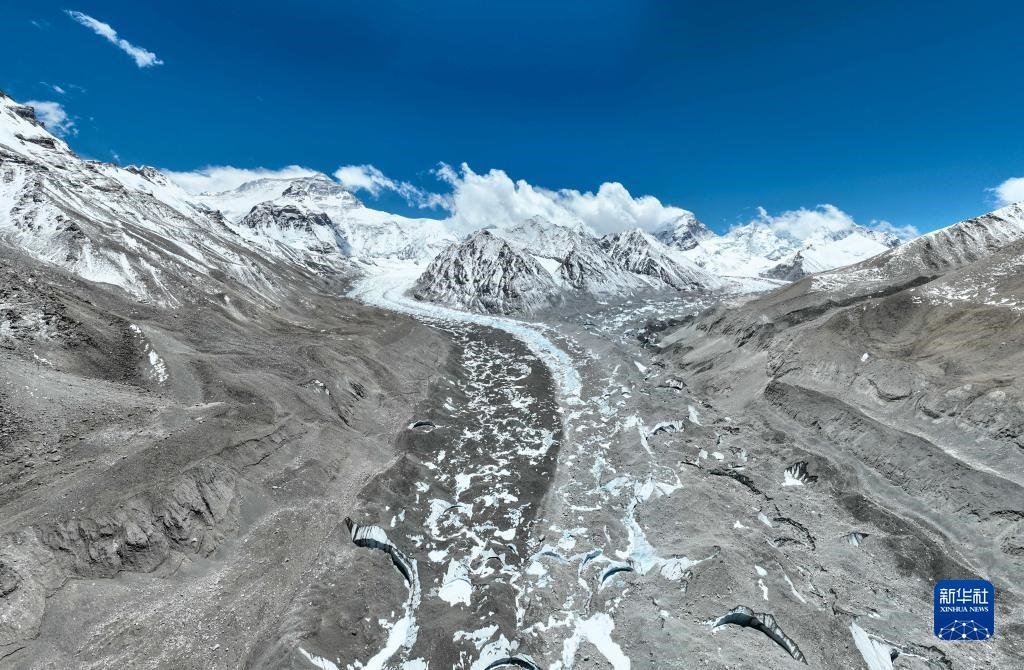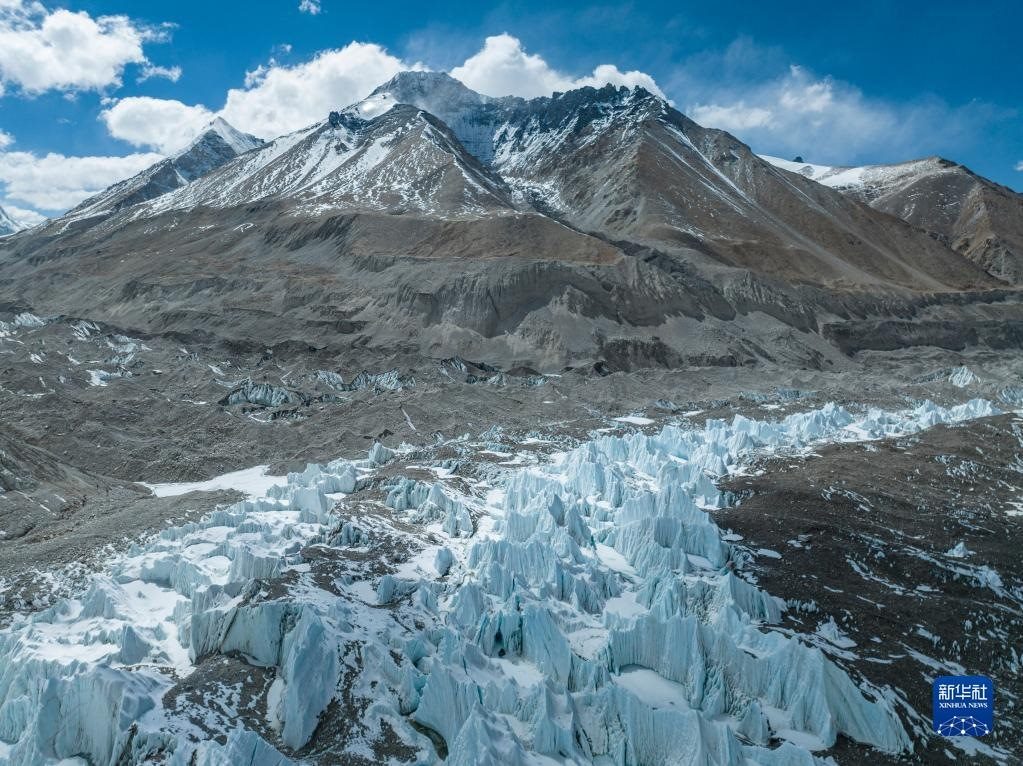 這是珠峰腳下的中絨布冰川(5月15日攝,無(wú)人機(jī)照片)。