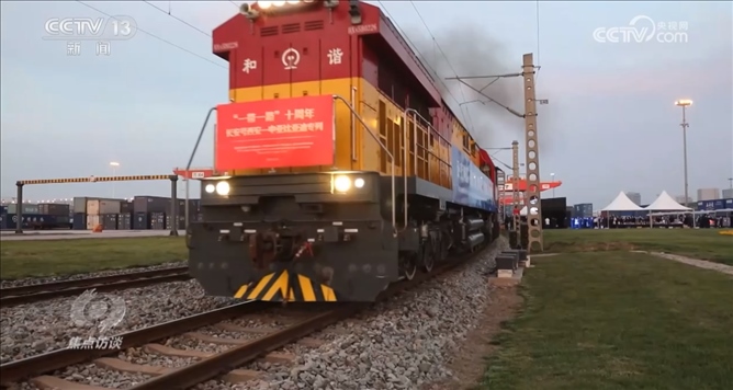 就在上個月,為紀(jì)念“一帶一路”十周年特別開行的中歐班列——“一帶一路”十周年長安號西安—中亞專列從西安國際港務(wù)區(qū)發(fā)車。2013年11月,首列中歐班列長安號正是由這里出發(fā),開往哈薩克斯坦。從這里啟程的長安號,從最初的年開行46列發(fā)展到去年的4600多列,十年增長了100倍。十年來,長安號累計開行超過1.6萬列。其中,中亞五國開行量達(dá)到4250列,為促進(jìn)中國同中亞互聯(lián)互通與經(jīng)貿(mào)合作發(fā)揮了重要作用。