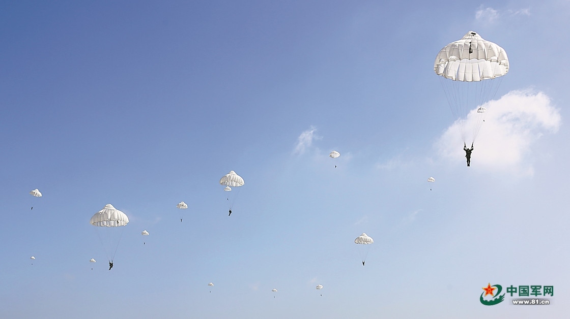 空降兵某旅組織跳傘訓(xùn)練 錘煉官兵傘降能力