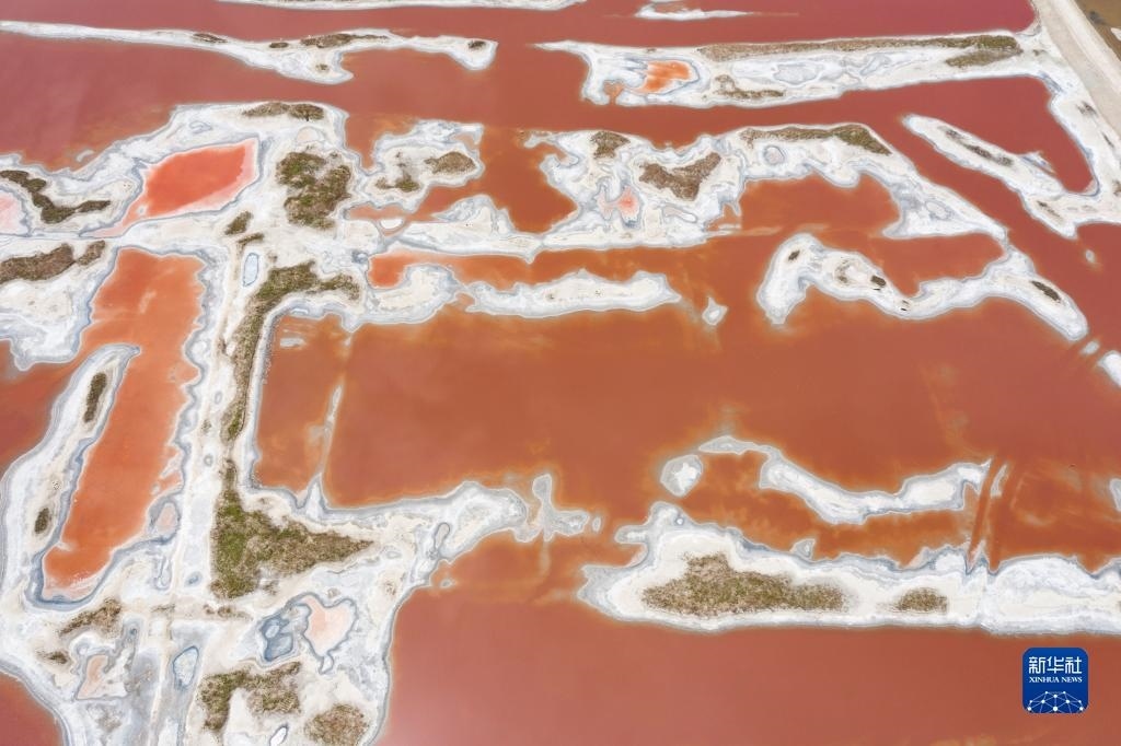 這是5月17日拍攝的運(yùn)城鹽湖一景(無人機(jī)照片)。