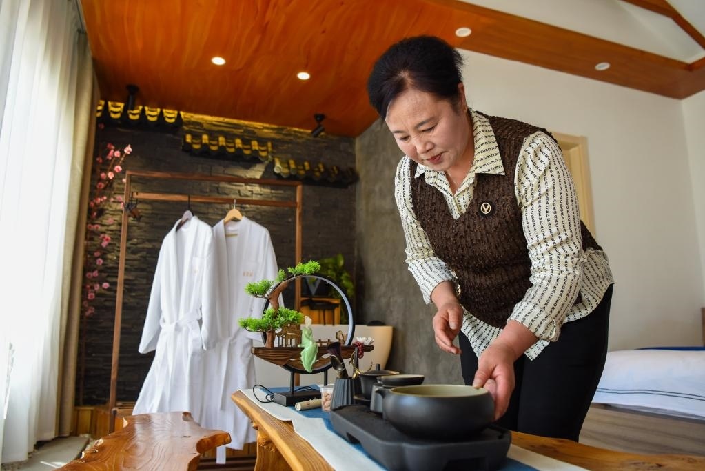 “當了一輩子農民,沒想過從土地之外還能賺上錢?!睏钣裉m坦言,起初她并不熱心于張羅民宿生意,但2021年開始,村里游客漸增,趕上夏季旅游旺季,大量游客前往民宿消費,為她帶來每年約5萬元旅游收入。眼下,桃花村已打造22家主題民宿庭院,帶動本地就業(yè)40多人,全村人均年增收2000元。