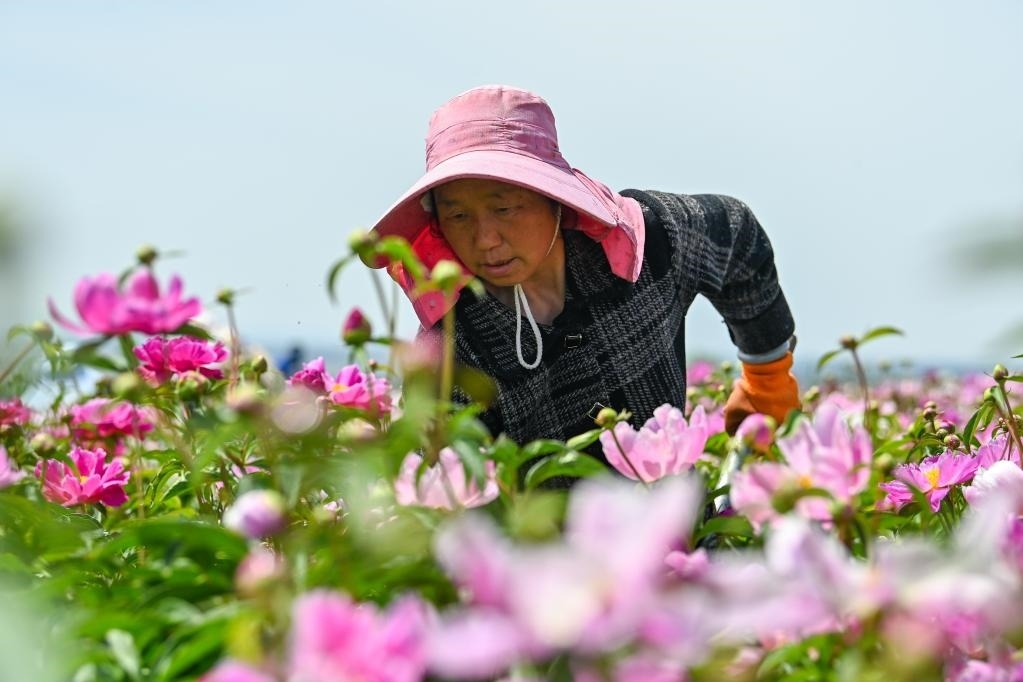 “花經濟”持續(xù)升溫下,越來越多農民走出家門,成為產業(yè)工人。入夏,走進伊寧縣天山花海景區(qū),連片芍藥、亞麻花爭相盛開,工人正在田間加緊除草、養(yǎng)護。