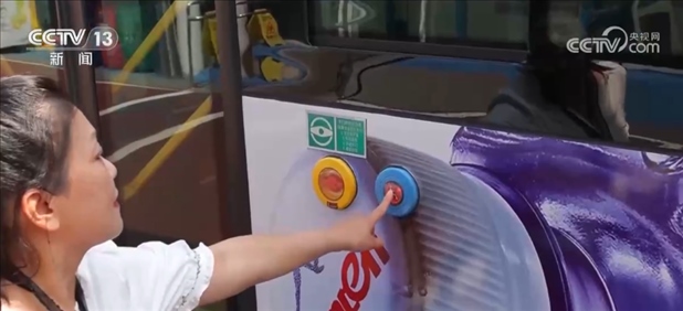 無障礙公交車后門下方安裝了一個(gè)伸縮踏板,可以連接地面與車廂,方便輪椅、嬰兒車等出入車廂。車廂內(nèi)還專門設(shè)置了供輪椅停放的區(qū)域,并配備有護(hù)板和安全帶。