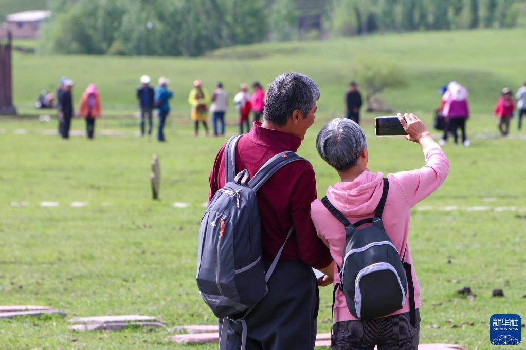 5月19日,游客在位于新疆新源縣的那拉提旅游風(fēng)景區(qū)觀光。