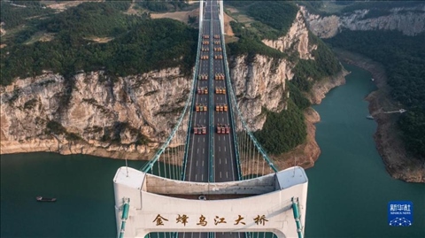5月21日,由貴州路橋集團(tuán)承建的金烽烏江大橋進(jìn)行靜態(tài)荷載試驗(yàn),48輛負(fù)載砂石的大型貨車(chē)有序行駛到固定的位置進(jìn)行對(duì)稱(chēng)、偏心檢測(cè),檢驗(yàn)橋梁結(jié)構(gòu)整體的施工質(zhì)量與受力性能,為橋梁竣工驗(yàn)收提供科學(xué)依據(jù)。