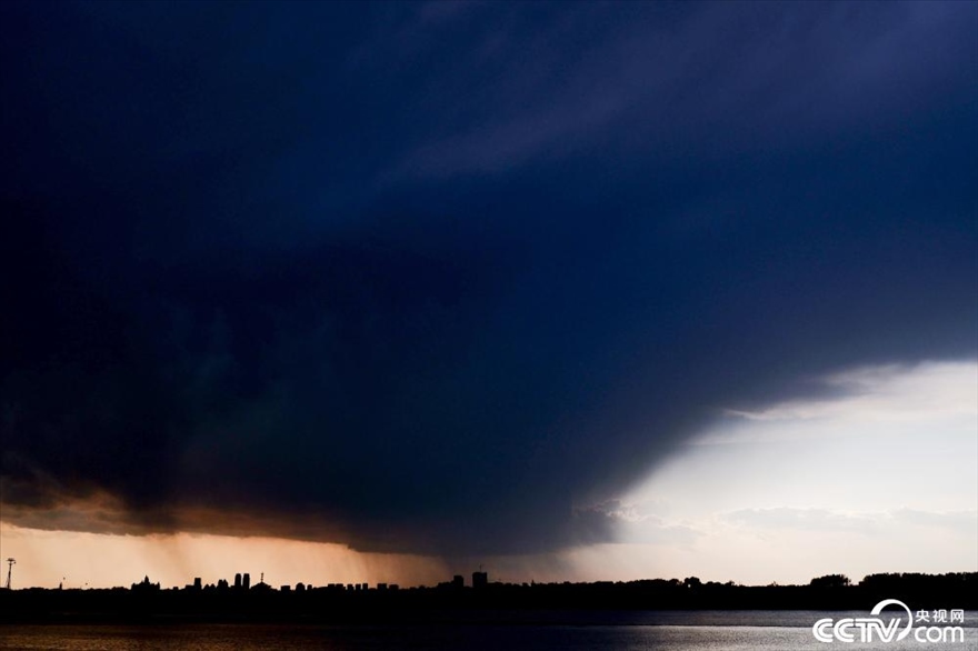 5月21日下午,黑龍江省哈爾濱市迎來(lái)強(qiáng)降雨天氣,整座城市被雷暴云籠罩,白晝?nèi)缫梗鹑缟涎菘苹么笃?br>