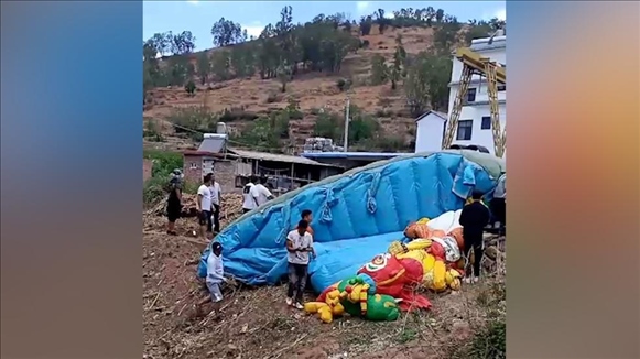 ·大理平川鎮(zhèn)一充氣城堡側(cè)翻,組織方:龍卷風(fēng)突襲有小朋友受傷。