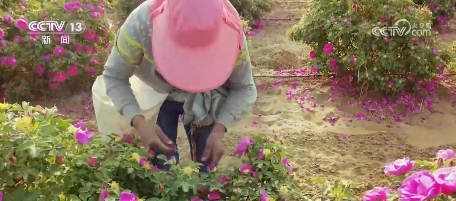 走進新疆和田地區(qū)于田縣的玫瑰種植示范基地,不同品種的玫瑰花競相綻放、爭奇斗艷,村民們正忙著采摘玫瑰,不一會功夫,框子里已經裝滿沉甸甸的花朵。