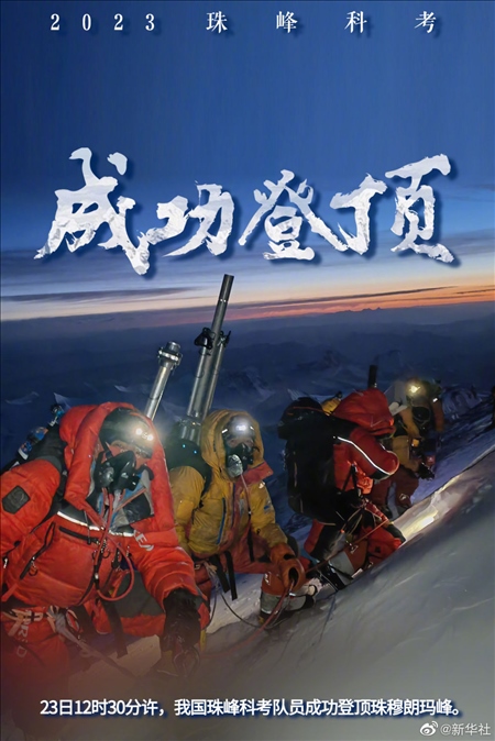 23日12時30分許,2023年珠峰科考13名科考登頂隊員成功登頂珠穆朗瑪峰。這是我國珠峰科考繼2022年之后,再次突破8000米以上海拔高度。
