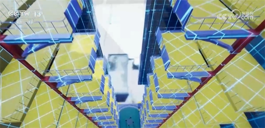 90多米高的廠房一通到頂,中間有十多層工作平臺,方便工作人員進(jìn)行操作。
