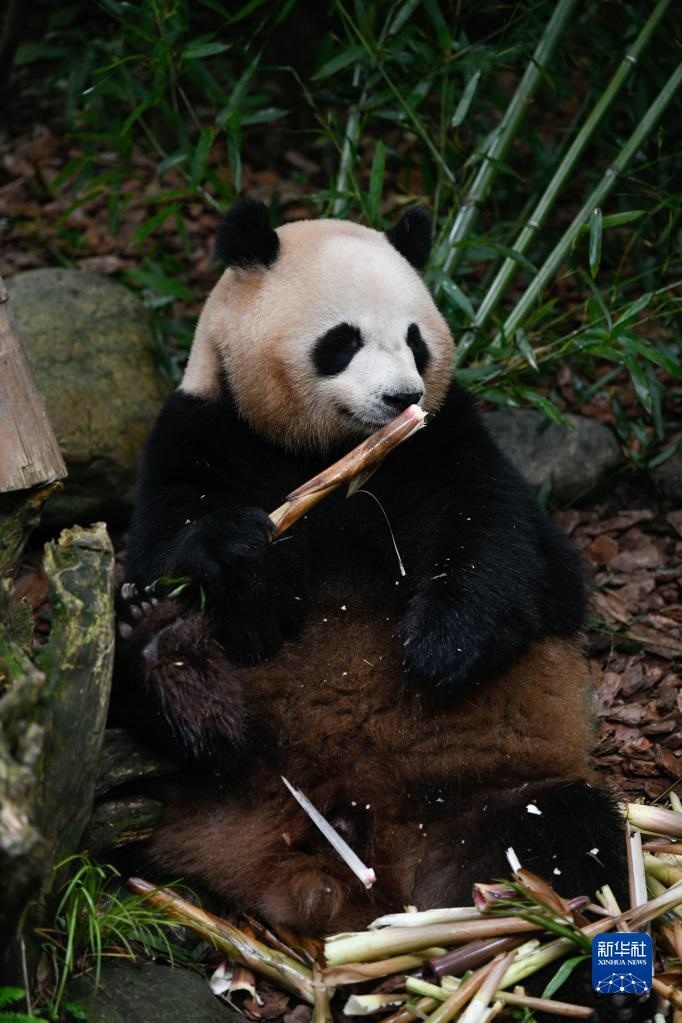 5月29日,在成都大熊貓繁育研究基地都江堰野放繁育研究中心,梅蘭在吃竹筍。