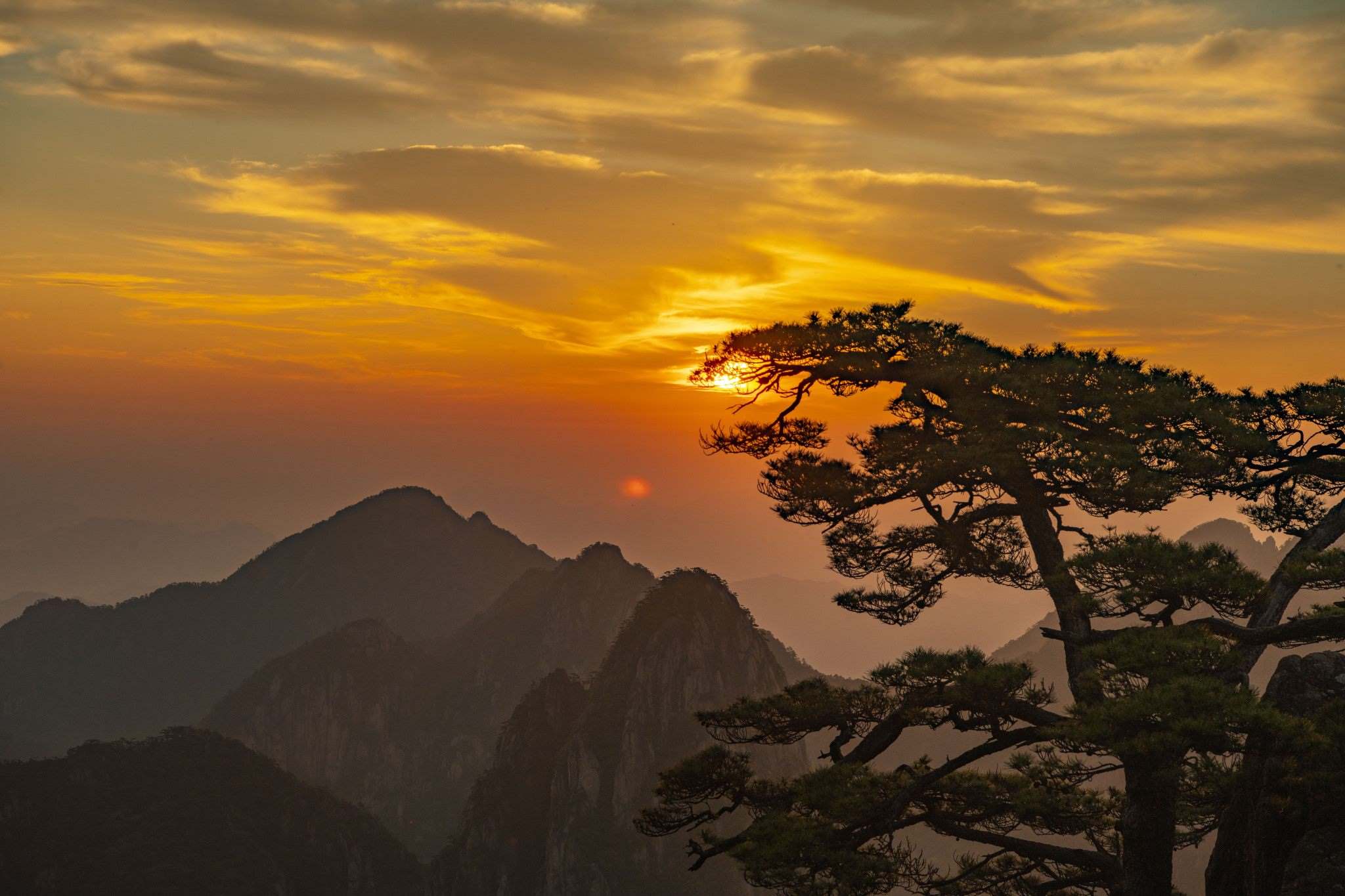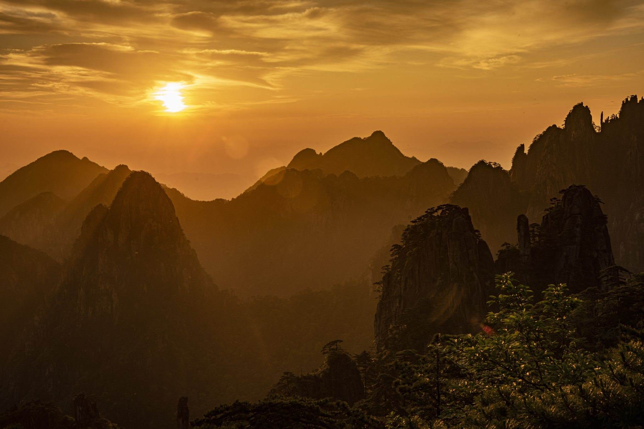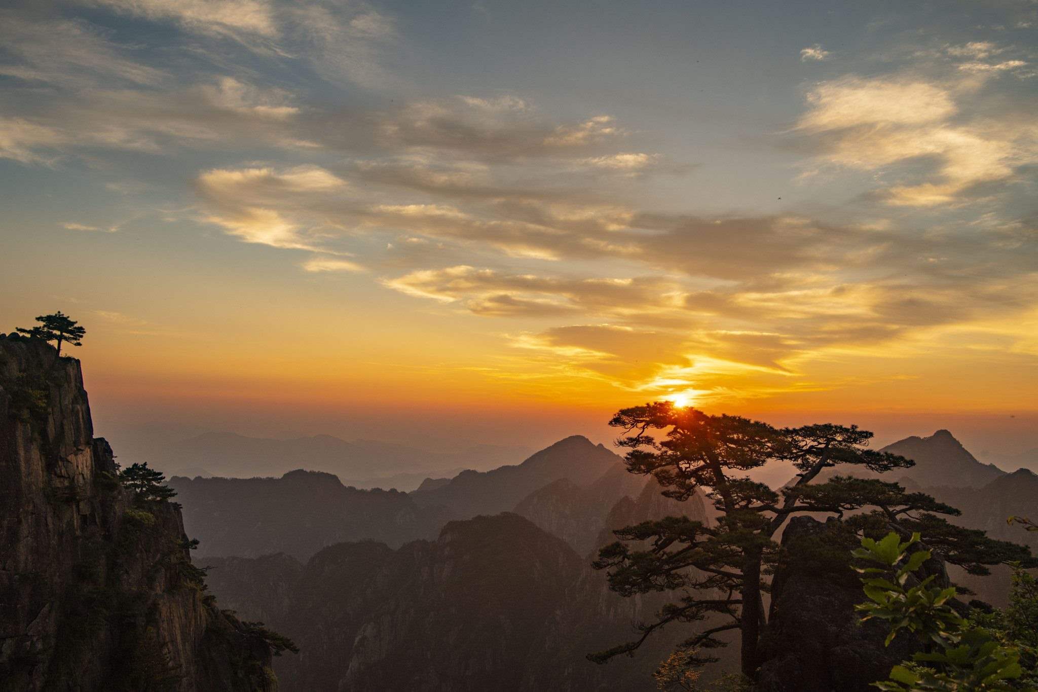2023年5月29日,安徽黃山,初夏時(shí)節(jié),霞光渲染下的奇峰秀色令人流連忘返。視覺中國(guó)