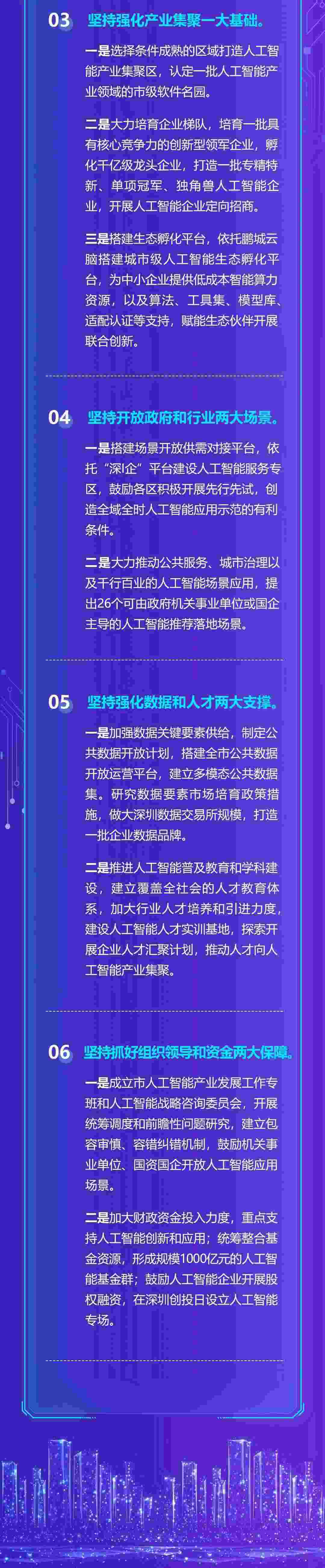 ?。ㄊ┘訌?qiáng)資金保障。加大財(cái)政資金投入力度,重點(diǎn)支持人工智能創(chuàng)新和應(yīng)用。發(fā)揮政府投資引導(dǎo)基金作用,統(tǒng)籌整合基金資源,形成規(guī)模1000億元的人工智能基金群。鼓勵(lì)人工智能企業(yè)在境內(nèi)外多層次資本市場(chǎng)開展股權(quán)融資,支持風(fēng)投、創(chuàng)投機(jī)構(gòu)加強(qiáng)對(duì)人工智能初創(chuàng)企業(yè)的投資并購(gòu),在每月8日舉行的深圳創(chuàng)投日活動(dòng)中設(shè)立人工智能專場(chǎng)。(責(zé)任單位:市財(cái)政局、市發(fā)展改革委、市地方金融監(jiān)管局、市中小企業(yè)服務(wù)局等)