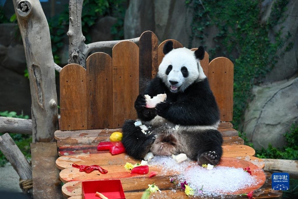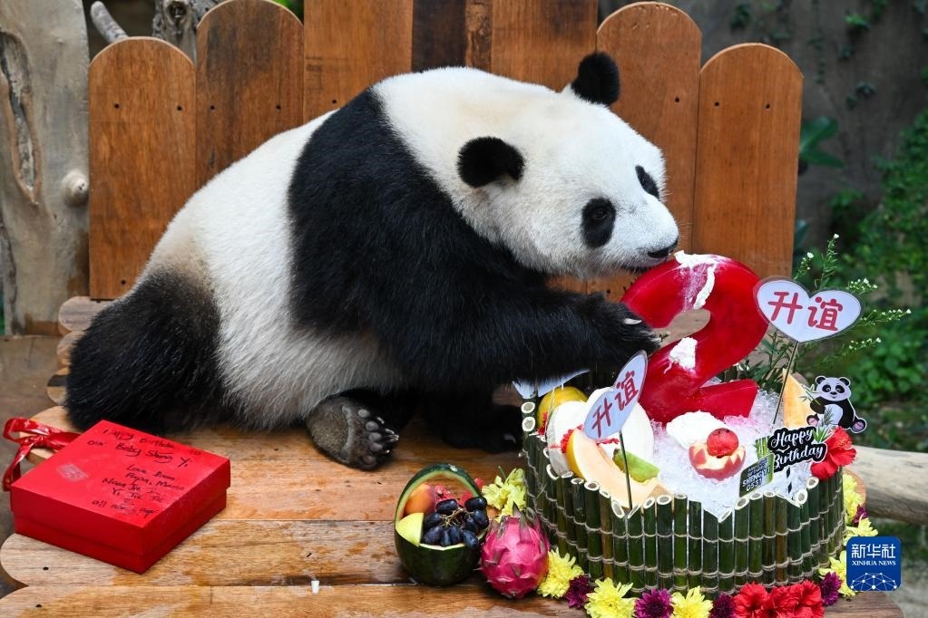 當(dāng)日,大熊貓寶寶“升誼”迎來兩歲生日,動(dòng)物園為它準(zhǔn)備了特別的生日大餐,眾多民眾前往動(dòng)物園為它慶生?!吧x”是中國旅馬大熊貓“興興”和“靚靚”生下的第三只寶寶,出生于2021年5月31日中馬建交47周年紀(jì)念日當(dāng)天。新華社記者 朱煒 攝
