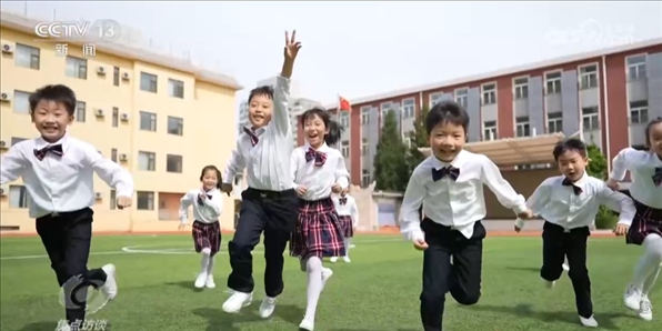 為了防止孩子過(guò)早地戴上“小眼鏡”、成為“小胖墩”,讓孩子擁有健康的體魄,近幾年,國(guó)家陸續(xù)采取了一系列具體的舉措。比如鼓勵(lì)基礎(chǔ)教育階段學(xué)校每天開(kāi)設(shè)一節(jié)體育課,著力保障學(xué)生每天校內(nèi)、校外各一個(gè)小時(shí)體育活動(dòng)時(shí)間。而在“雙減”政策實(shí)施后,許多學(xué)校也按照要求在課后給學(xué)生提供文藝、體育等延時(shí)服務(wù)。在北京市海淀區(qū)實(shí)驗(yàn)小學(xué)九一分校,孩子們每天一節(jié)體育課,再加上上下午的課間操和大課間的體育鍛煉等等,一天之中孩子們的運(yùn)動(dòng)時(shí)間大約在80分鐘以上。
