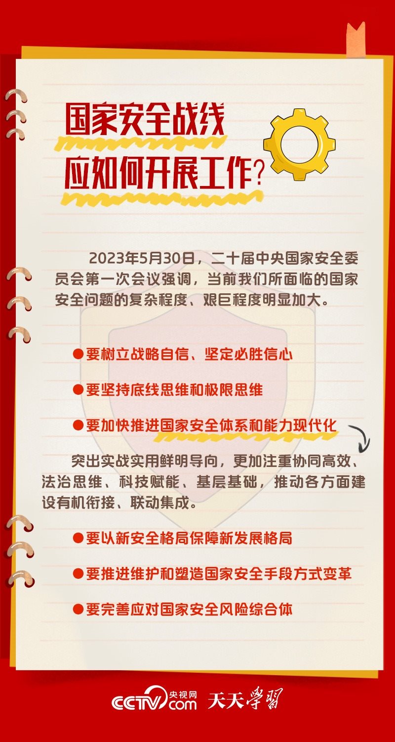 5月30日,習近平總書記主持召開二十屆中央國家安全委員會第一次會議時強調,要全面貫徹黨的二十大精神,深刻認識國家安全面臨的復雜嚴峻形勢,正確把握重大國家安全問題,加快推進國家安全體系和能力現代化,以新安全格局保障新發(fā)展格局,努力開創(chuàng)國家安全工作新局面。