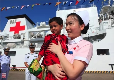 2013年,“和平方舟”號醫(yī)院船再次來到孟加拉國。上萬民眾自發(fā)涌向中國醫(yī)院船,最高單日門診1700余人次。3歲的阿里法·沁健康么?中國軍醫(yī)牽掛著她。她家住在偏僻農(nóng)村,中國軍醫(yī)設法找到了她,邀請她登上“和平方舟”號醫(yī)院船體檢。