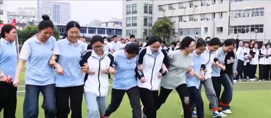在四川廣漢中學(xué),一場專門針對(duì)高三學(xué)子的趣味接力賽正在開展。同學(xué)們在完成賽跑、跳繩等項(xiàng)目的同時(shí),需要團(tuán)隊(duì)協(xié)作完成顛網(wǎng)球、射門等項(xiàng)目。