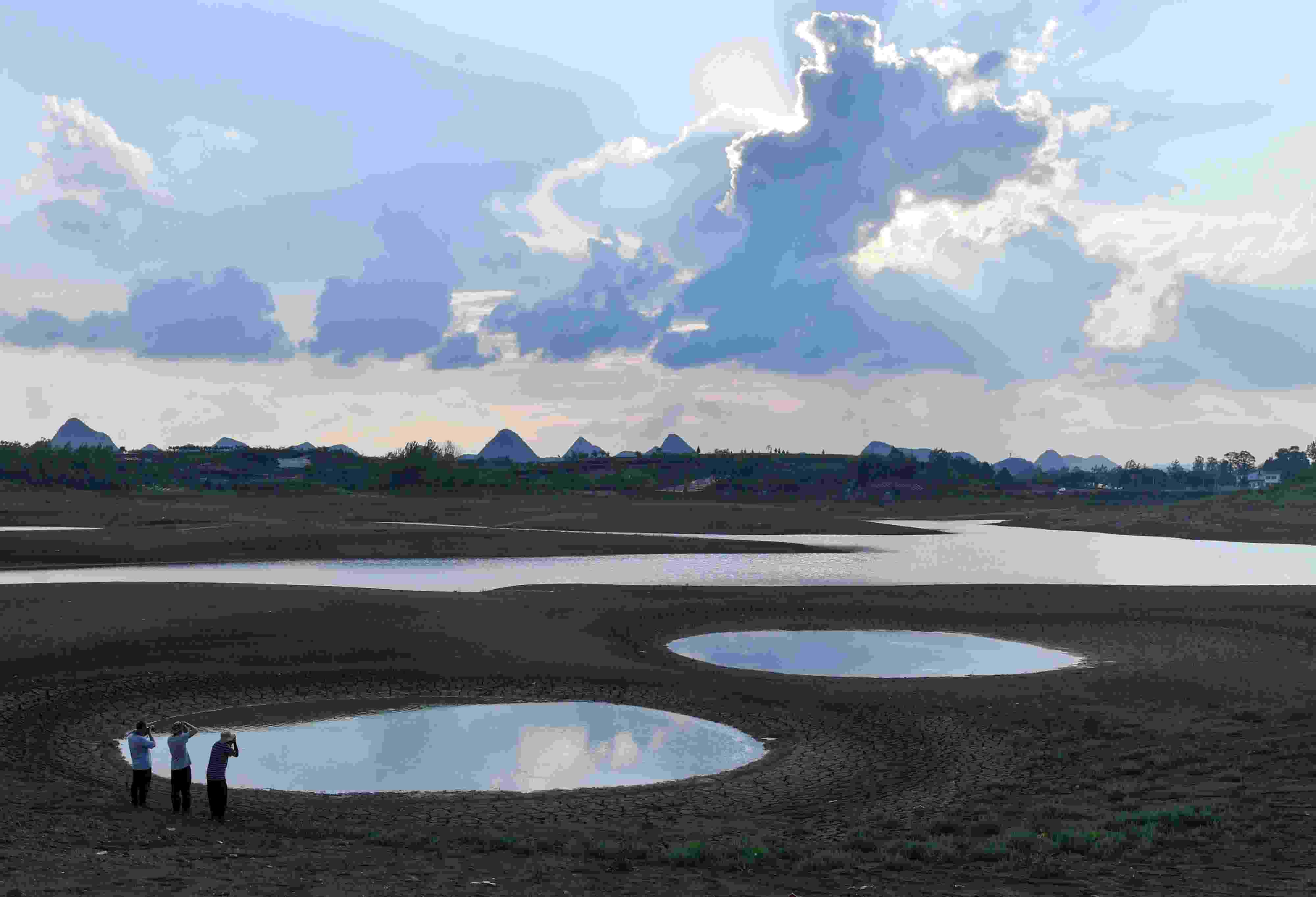 2023年6月3日,貴陽(yáng),紅楓湖水位降低,灘涂裸露。 視覺(jué)中國(guó)