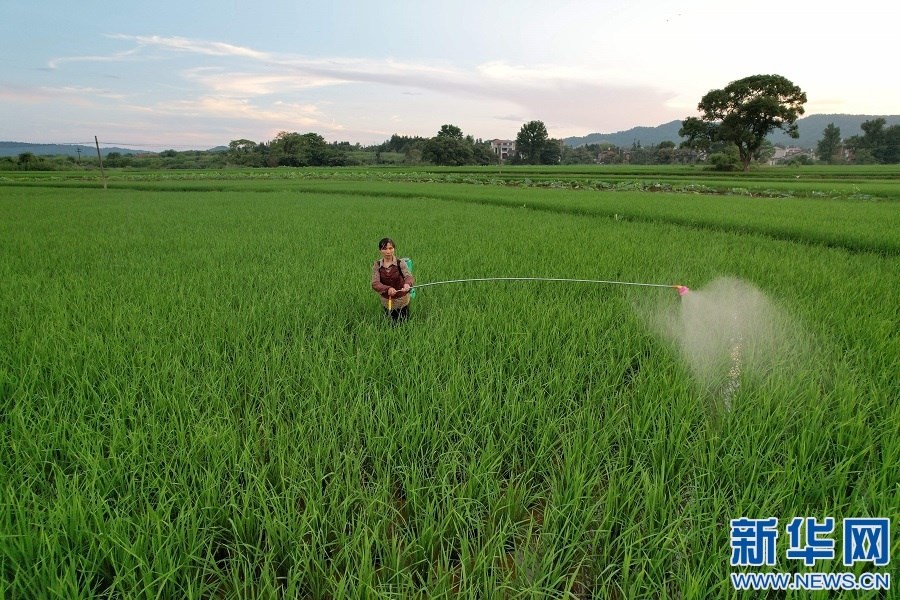 近日,在江西省撫州市廣昌縣,3.4萬多畝早稻正逐步進(jìn)入分蘗期,稻田里綠油油一片,禾苗根壯、長勢喜人。農(nóng)民正忙著噴灑農(nóng)藥,進(jìn)行防治病蟲害作業(yè),為夏糧豐產(chǎn)豐收打下基礎(chǔ)。(危仁鵬 徐維棟)