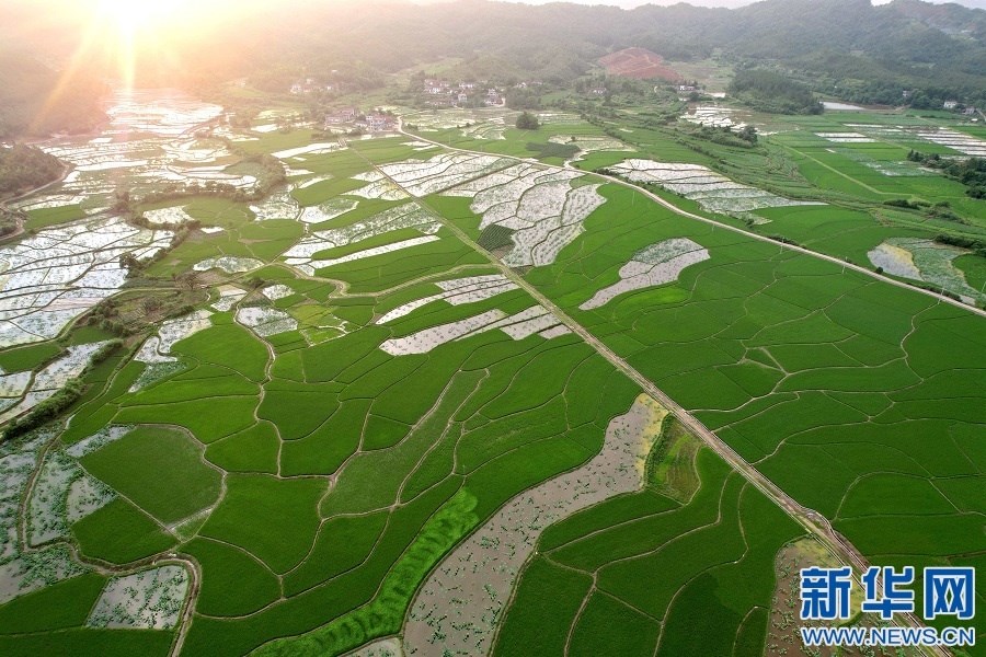 廣昌縣頭陂鎮(zhèn)早稻進(jìn)入分蘗期,長勢良好。新華網(wǎng)發(fā) 危仁鵬 攝