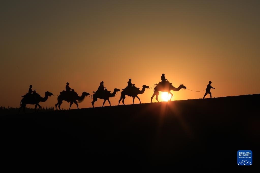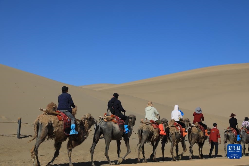 眼下正值甘肅省敦煌市旅游旺季,世界文化遺產(chǎn)莫高窟和沙漠奇觀鳴沙山月牙泉景區(qū)等地持續(xù)吸引游客前來參觀游覽。截至6月7日,敦煌市今年累計(jì)接待游客超135.5萬人次。新華社發(fā)(張曉亮 攝)
