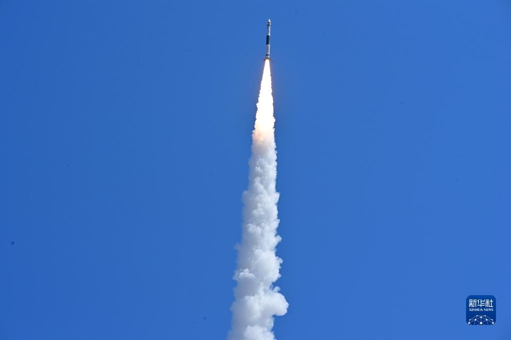 6月9日10時(shí)35分,我國(guó)在酒泉衛(wèi)星發(fā)射中心使用快舟一號(hào)甲運(yùn)載火箭,成功將龍江三號(hào)試驗(yàn)衛(wèi)星發(fā)射升空,衛(wèi)星順利進(jìn)入預(yù)定軌道,發(fā)射任務(wù)獲得圓滿成功。新華社發(fā)(李昀錫 攝)