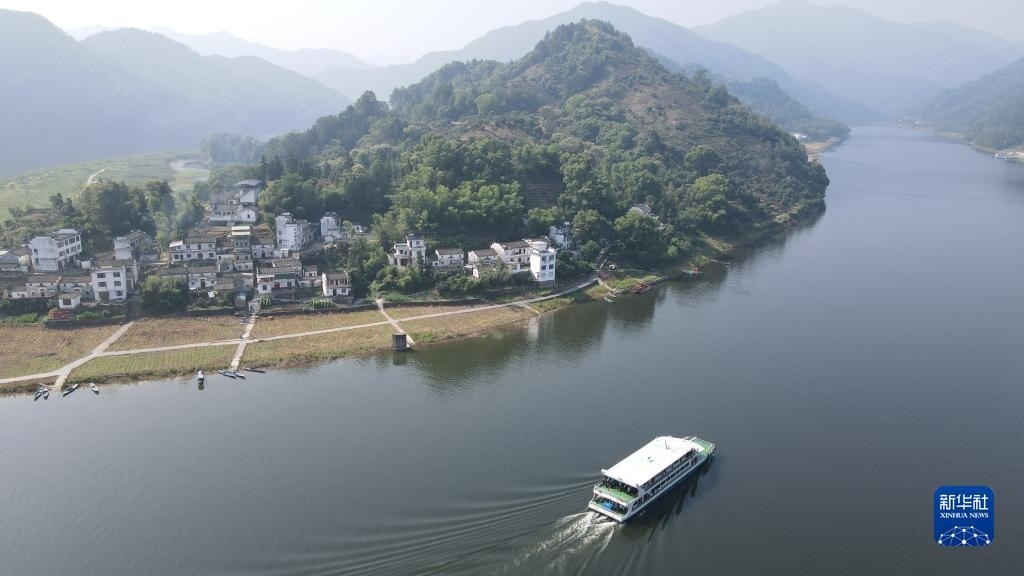 發(fā)源于安徽省黃山市休寧縣的新安江,東入浙江省千島湖、富春江,匯入錢塘江。多年來,安徽、浙江兩省堅持生態(tài)優(yōu)先、綠色發(fā)展之路,共同譜寫流域一體化保護和發(fā)展新曲。新華社發(fā)