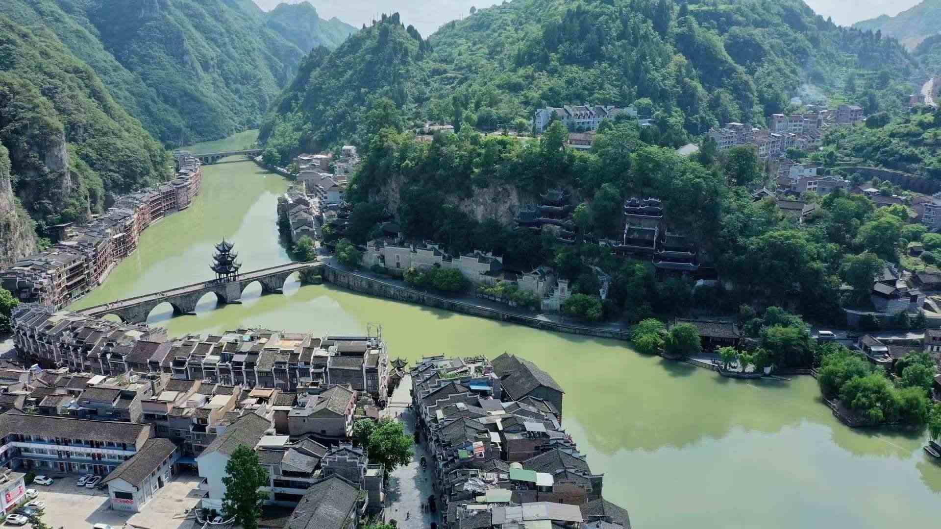 2023年6月7日,航拍貴州鎮(zhèn)遠(yuǎn),舞陽(yáng)河穿城而過(guò)。