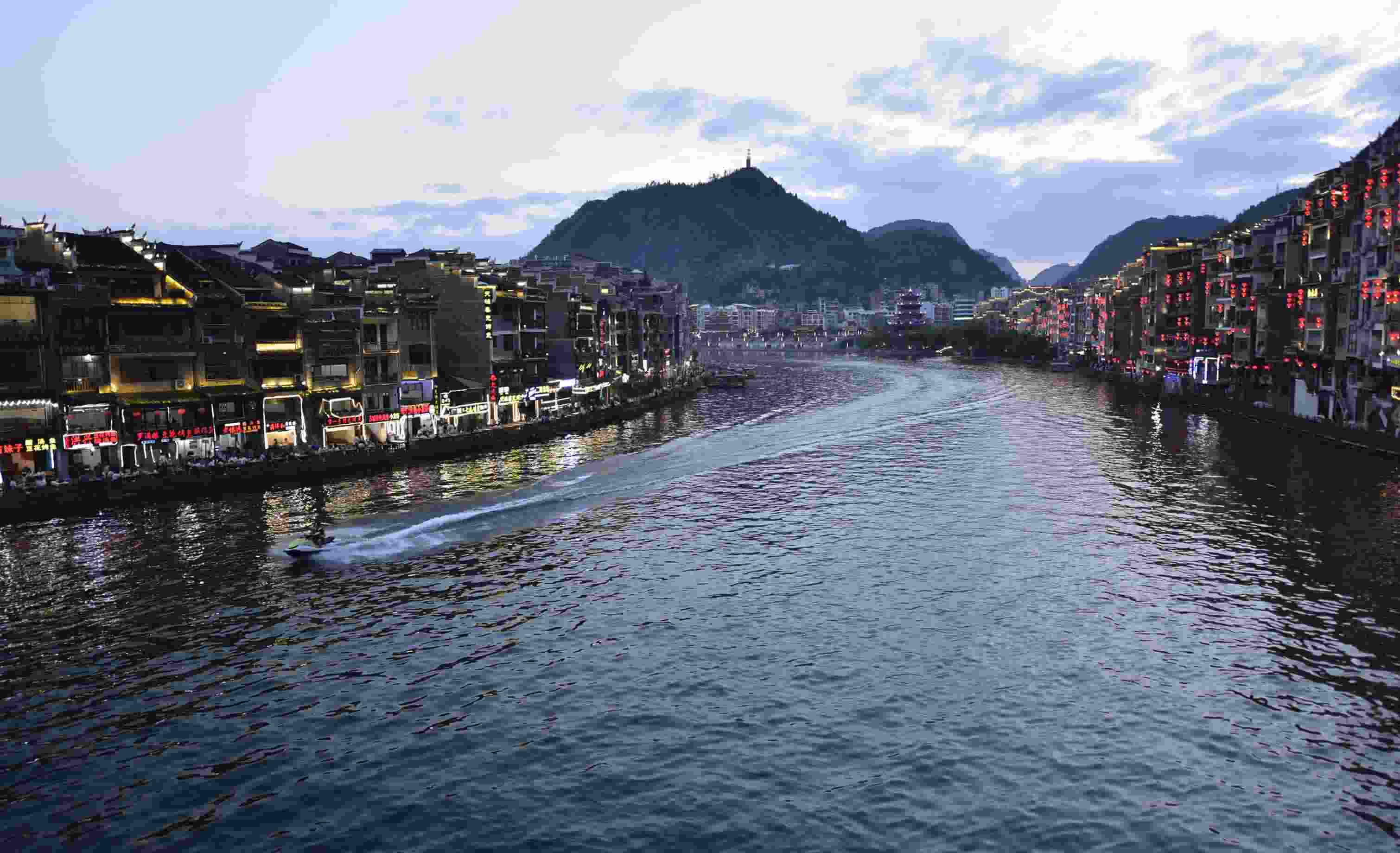 鎮(zhèn)遠(yuǎn)古城位于貴州省黔東南苗族自治州鎮(zhèn)遠(yuǎn)縣,據(jù)記載已有2280多年歷史。夜幕下的鎮(zhèn)遠(yuǎn)古城流光溢彩,璀璨奪目,宛如人間仙境。(寧堅 吳昌軍)