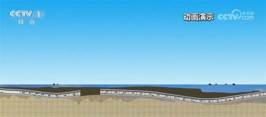 總臺(tái)央視記者 李偉代:我身后就是深中通道西人工島,它是深中通道橋隧轉(zhuǎn)換的關(guān)鍵構(gòu)造;從這里開始,深中通道將從橋梁部分轉(zhuǎn)入全長6845米海底隧道部分,未來汽車將從這里駛?cè)牒5姿淼?,最深將在海?0米的沉管中行駛。
