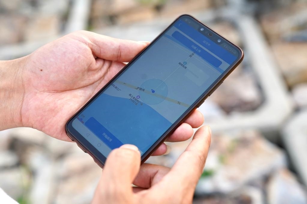 圖為6月2日,巡河中的沈曉華向記者展示河長制平臺(tái)。新華社記者林凱 攝