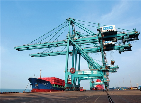 船舶停靠在河北黃驊港綜合港區(qū)集裝箱碼頭進行卸船作業(yè)(2023年3月9日攝)。駱學(xué)峰攝/本刊