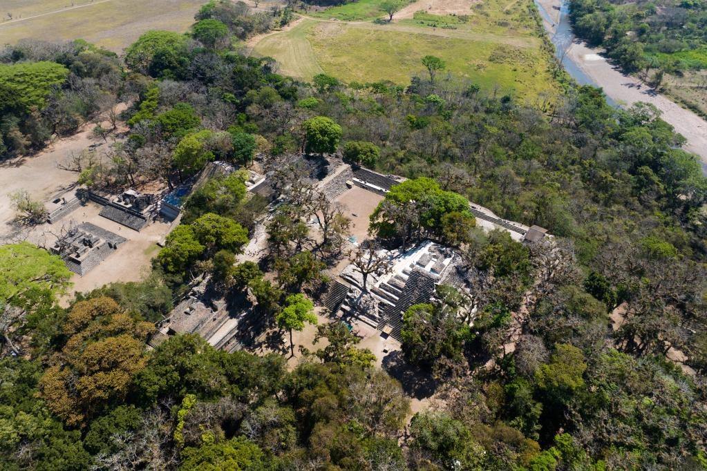 這是4月1日航拍的洪都拉斯科潘瑪雅古城遺址(無人機(jī)照片)。(新華社記者辛悅衛(wèi)攝)