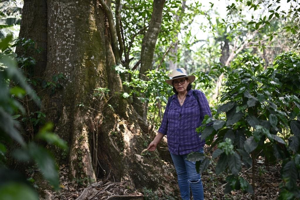 5月6日,在洪都拉斯馬爾卡拉,工人在一處咖啡種植園查看作物長勢。洪都拉斯的自然條件非常適合咖啡種植,是中美洲主要咖啡出口國之一。(新華社記者辛悅衛(wèi)攝)