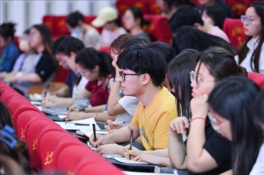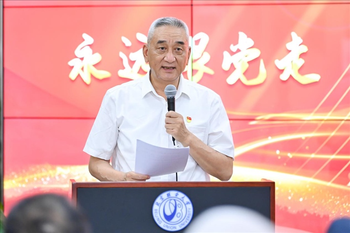 觀展后,參會嘉賓與管理學院200多名學生黨員及入黨積極分子在南院報告廳,共同開展“同上一堂主題教育專題黨課,在黨的旗幟下勝利前進”黨課活動。此次講座由管理學院黨委書記張玲娜主持,由北京新四軍暨華中抗日根據(jù)地研究會原副會長劉華蘇主講。