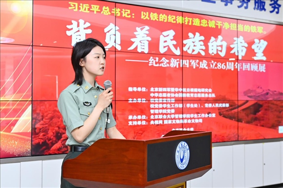 為深入學習貫徹習近平新時代中國特色社會主義思想主題教育,落實習近平加強全民國防教育的重要指示精神,弘揚愛國主義精神、增強全民國防意識,推動全民國防教育進校園,深化學?!按笏颊n”建設(shè),6月9日,由北京新四軍暨華中抗日根據(jù)地研究會、中華志愿者協(xié)會國防教育志愿服務(wù)總隊指導(dǎo),北京聯(lián)合大學黨委學生工作部(學生處)、黨委人民武裝部、黨委宣傳部、北京聯(lián)合大學新時代文明實踐中心建設(shè)規(guī)劃研究所、管理學院黨委共同主辦,管理學院學生工作辦公室承辦的“背負民族希望——紀念新四軍成立86周年回顧展”大會在北四環(huán)校區(qū)學生事務(wù)大廳舉行。