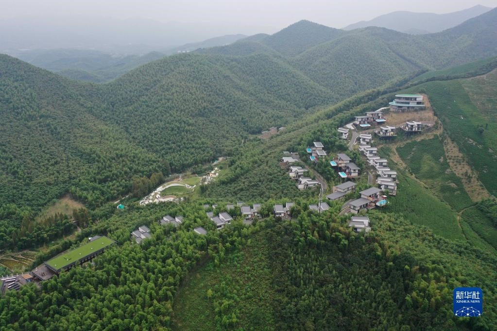 位于浙江湖州吳興區(qū)妙西鎮(zhèn)的“慧心谷”度假酒店(無(wú)人機(jī)照片,2020年10月3日攝)。附近妙山村的不少村民在這家山谷中的酒店就業(yè)。新華社記者 黃宗治 攝