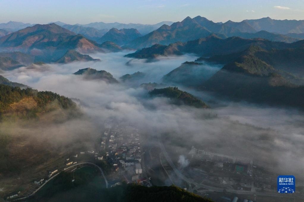 浙江杭州淳安縣屏門鄉(xiāng)風(fēng)光(無(wú)人機(jī)照片,3月10日攝)。新華社記者 徐昱 攝