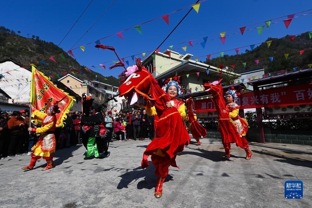 浙江杭州淳安縣屏門鄉(xiāng)屏前村傳統(tǒng)廟會(huì)上的竹馬表演(3月10日攝)。近年來(lái),屏門鄉(xiāng)當(dāng)?shù)貙⒚袼妆硌?、踏青賞春、農(nóng)家特產(chǎn)展賣等融入傳統(tǒng)廟會(huì)中,成為美麗山鄉(xiāng)的春季熱鬧“大戲”,助力鄉(xiāng)村文旅融合發(fā)展和共同富裕。新華社記者 徐昱 攝