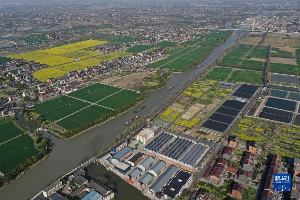 浙江杭州臨平區(qū)京杭大運(yùn)河沿岸的村莊(無(wú)人機(jī)照片,3月15日攝)。新華社記者 黃宗治 攝